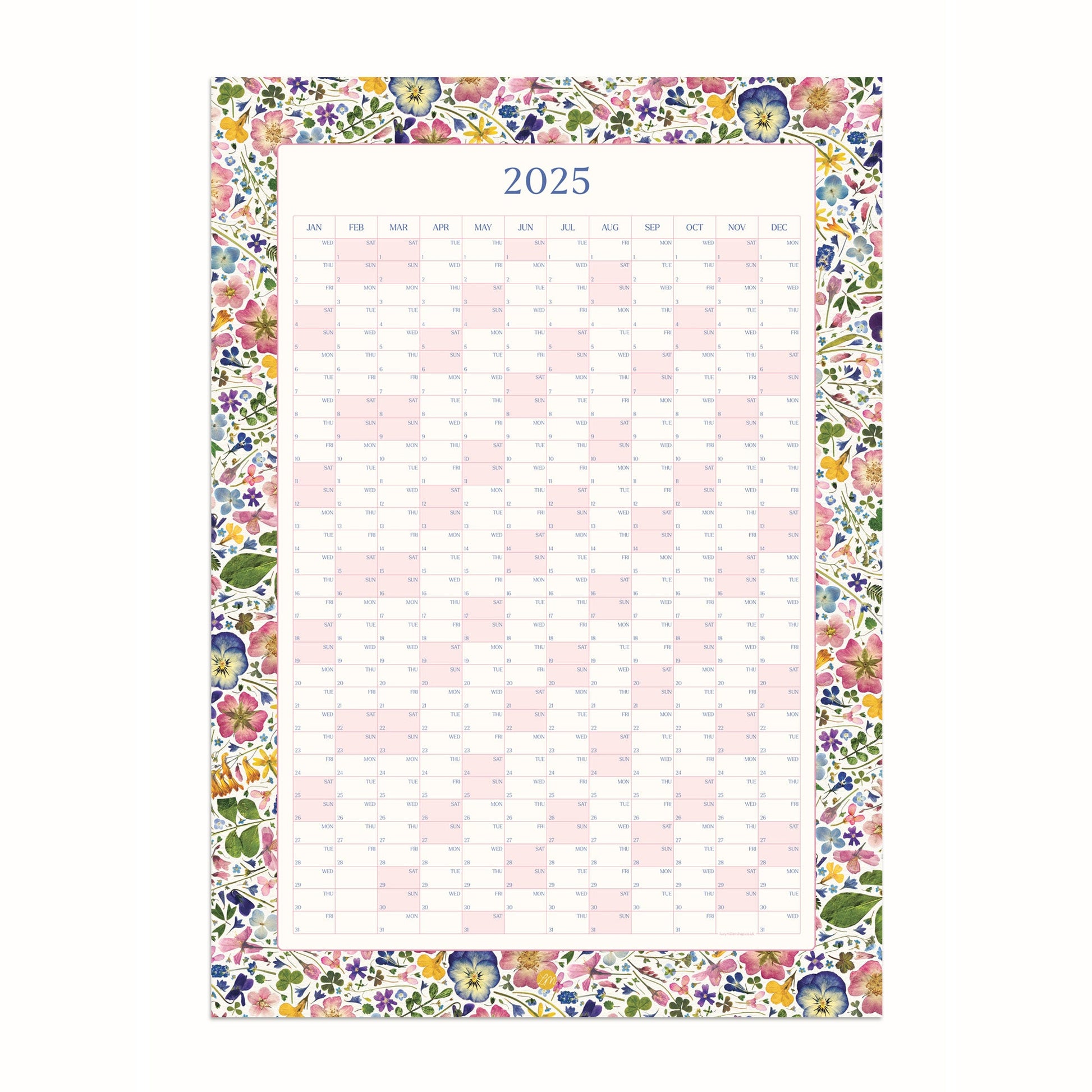 | Plan your year with elegance and ease using the 2025 Pressed Flower Wall Planner. A standout from the pressed flower collection, this luxurious yearly calendar combines functional design with delicate, nature-inspired floral prints, making it as beautiful as it is practical. Ideal for home or office, it brings a serene floral charm to any room while helping you stay organised throughout the year. planner offers versatile display options—hang it with tape, frame it for a polished look, or use a magnetic picture hanger. For flexible planning, use a non-permanent whiteboard pen on the glass or Perspex if framed. |