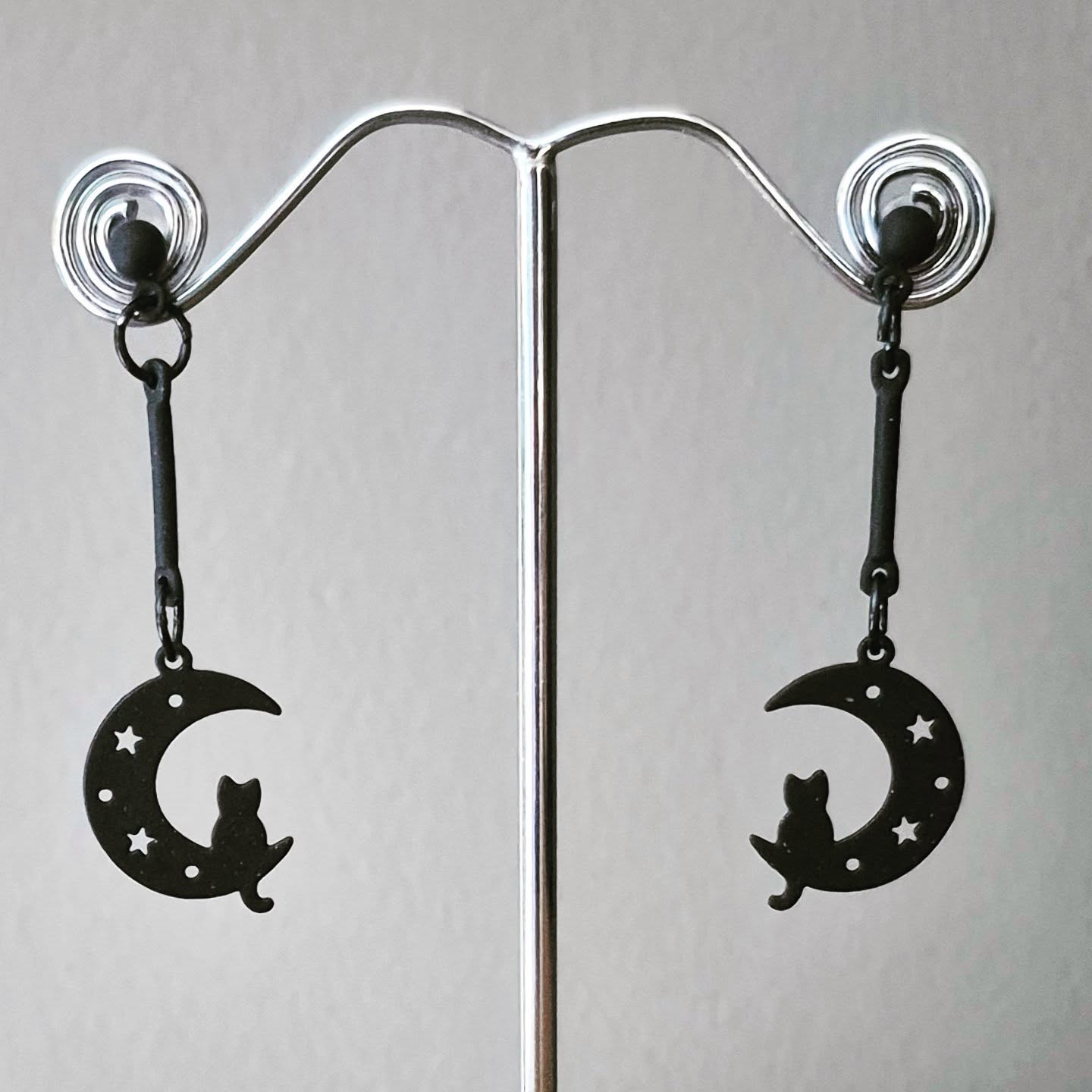 Cats on Moon Silhouette Drop Earrings