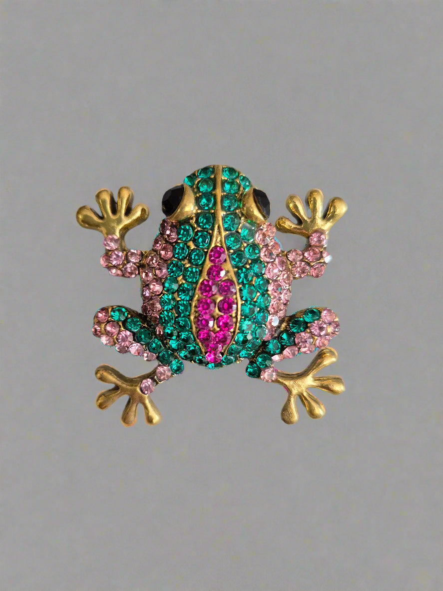 Add a splash of fun to your outfit with this Encrusted Frog Brooch. Sparkling with intricate detailing, it’s the perfect playful accessory to brighten your day and catch curious glances wherever you go. Let this charming little frog hop into your collection and bring a touch of fun to your style!