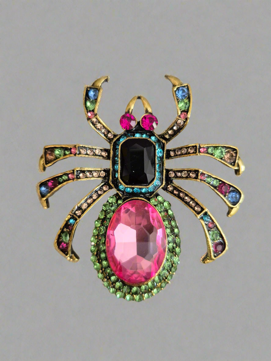 Add a touch of sparkle and fun to your outfit with this Large Crystal Spider Brooch. Its shimmering crystals catch the light beautifully, making it a fun and eye-catching accessory that’s perfect for those who love a little playful charm in their style. Whether pinned to a jacket, bag, or hat, this brooch brings a unique twist to any look.
