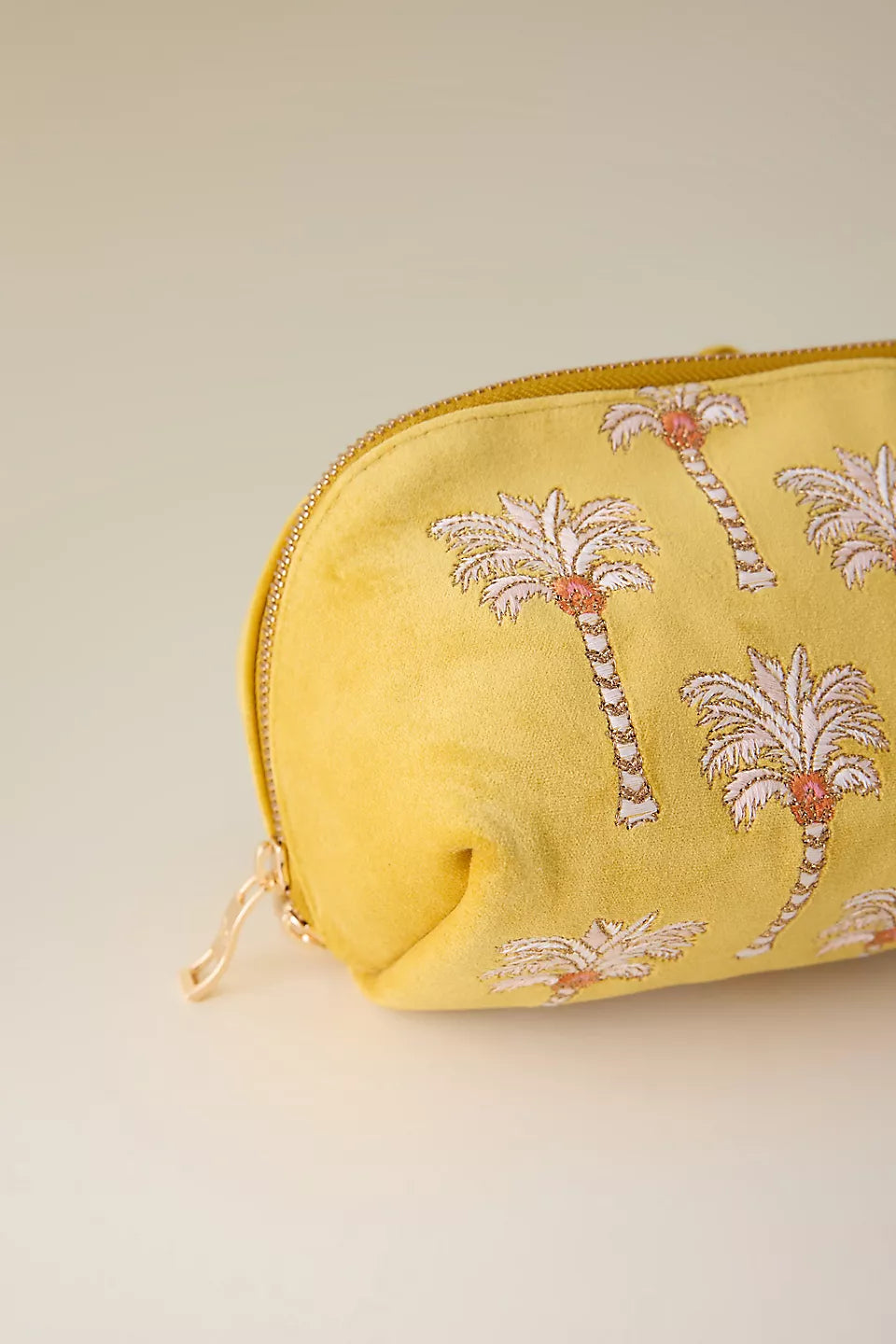 Sunrise Palms Embroidered Velvet Open Flat Makeup Bag