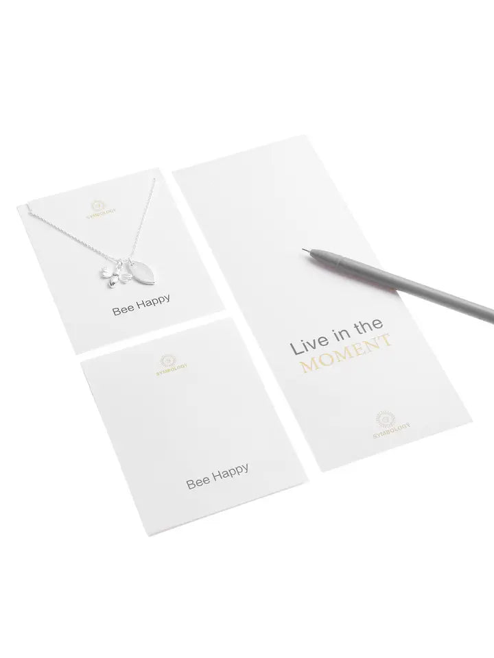 It's paired with a simple and beautiful card with the handwriting message 'Live in the moment'.