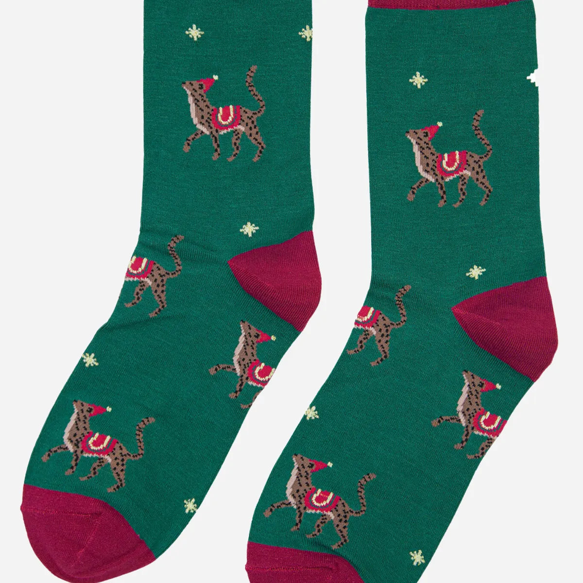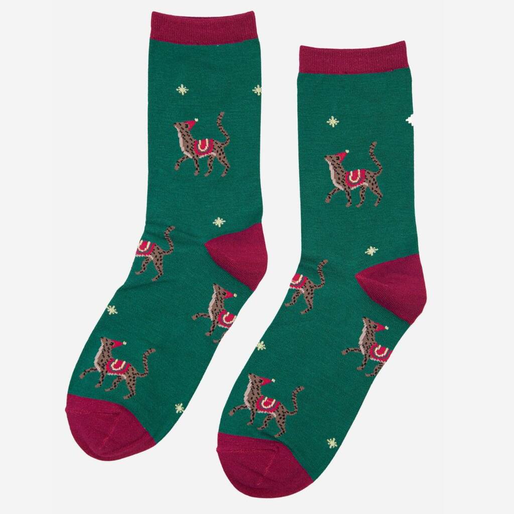 Women's Bamboo Socks Cheetah Print Party Socks Novelty Ankle Sock Green